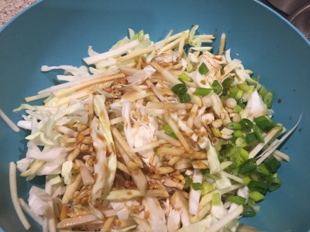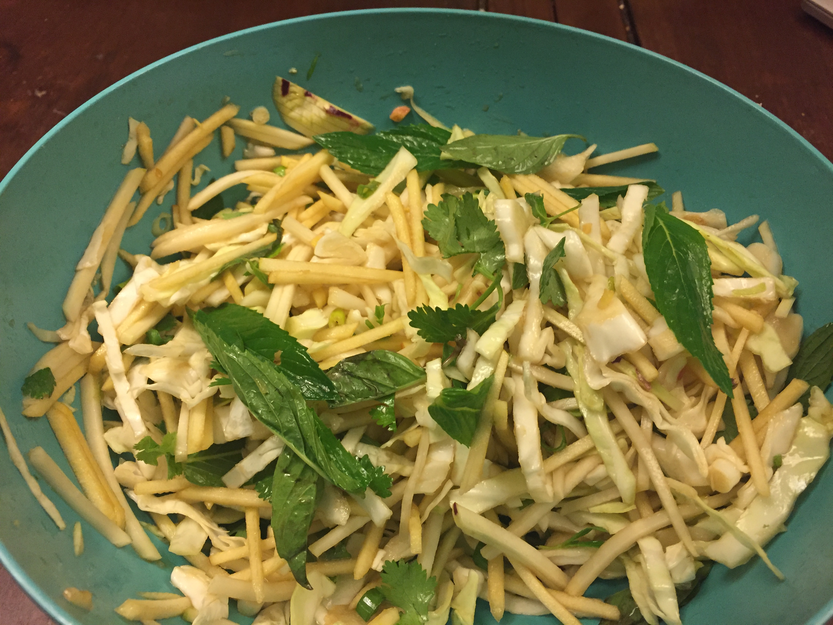I make some sort of cabbage salad probably every week, usually with a soy or fish sauce based dressing, and it can be as simple as some shredded cabbage and carrot and maybe a spring onion.